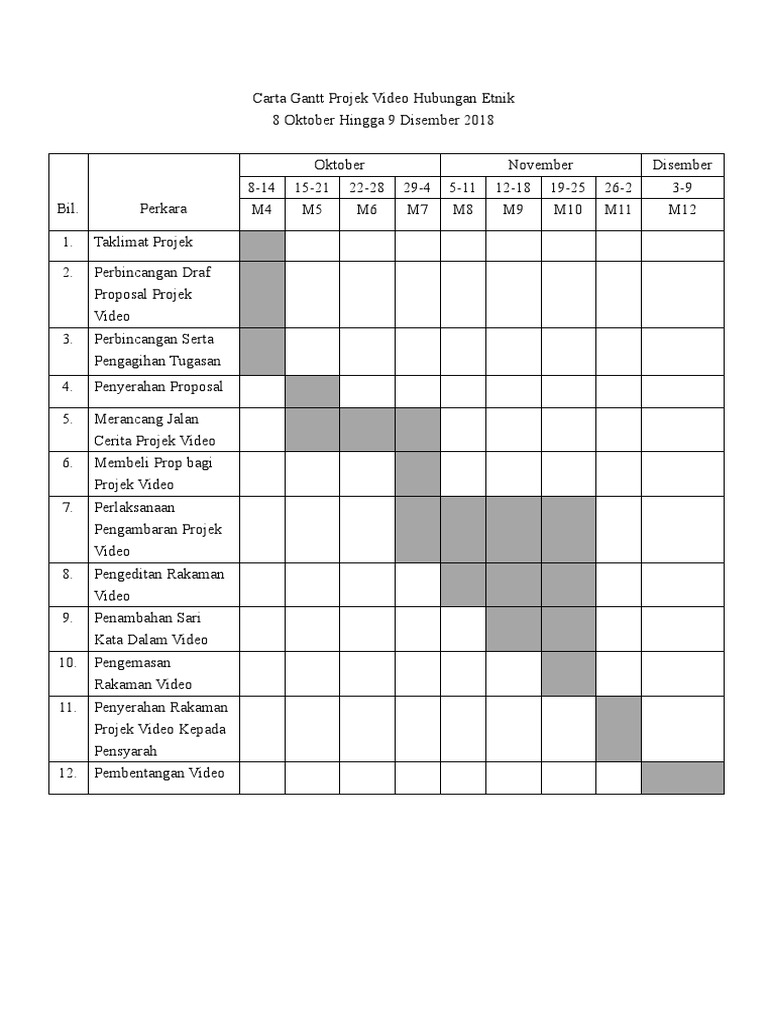 .masa minggu 1 2 3 4 1 2 3 4 5 1 2 3 4 1 2 3 4 1 2 3 memilih salah satu cu mengenal pasti masalah mencari tajuk projek memilih kaedah kajian pengenalan kajan penyataan masalah objektif kajian tujuan & skop kajian literature metodologi anggaran kos carta gantt pelaksanaan. Carta gant aktiviti hem cs 2012 via de.slideshare.net. Metode pelaksanaan pekerjaan proyek konstruksi adalah metode yang dibuat dengan cara teknis yang menggambarkan penguasaan penyelesaian pekerjaan yang sistematis dari awal sampai akhir yang meliputi tahapan/urutan pekerjaan utama dan uraian cara. Dalam suatu proyek pasti memerlukan sistem koordinasi yang efektif dan efisien struktur suatu organisasi juga merupakan bagian dari manajemen atau pengelolaan suatu proyek, dimana manajemen itu sendiri. Namun prakteknya suatu proyek mempunyai keterbatasan akan sumber daya, baik berupa manusia, material, biaya ataupun alat.