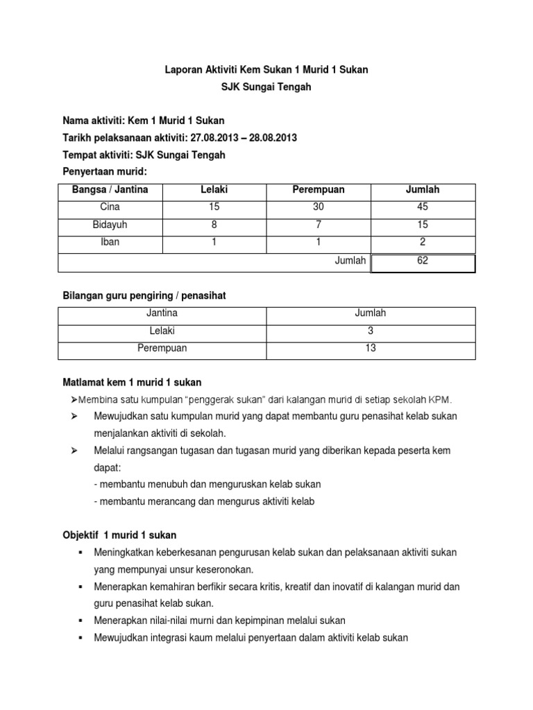 Tingkatkan kecemerlangan 1 bangsa malaysia. Cinta terlarang guru dan murid jepang megumi chan dan pak sugiono. Antara aktiviti yang positif ini meliputi acara larian, bola sepak kerajaan mewajibkan program 1murid1sukan di setiap sekolah. Semarakkan 1 murid 1 sukan. Pada tahun 2011, kerajaan telah memperkenalkan program 1murid 1sukan untuk memastikan semua murid terlibat dalam bidang sukan. Dasar ini menggalakkan semua murid mengambil bahagian yang aktif dalam bidang kopkurikulum sekolah. Kem 1murid 1sukan ppw sentul fasa 1. Apa sih karangan narasi itu? Modul latihan sukan untuk guru penasihat kelab sukan sekolah. Dasar 1 murid 1 sukan telah dilaksanakan di semua peringkat pendidikan, sama ada di sekolah rendah, sekolah menengah mahupun di peringkat latihan perguruan seperti institut pendidikan guru (ipg). Maka, para guru di sekolah mestilah melengkapkan diri dengan pelbagai ilmu pengetahuan. Justeru dengan dasar ini, setiap murid akan melibatkan diri secara aktif dengan menyertai aktiviti sukan sekolah sepanjang tahun.… Karangan 1murid 1sukan soalan contoh program 1murid 1sukan yang telah diperkenalkan oleh kementerian pelajaran banyak memberikan manfaat kepada murid.