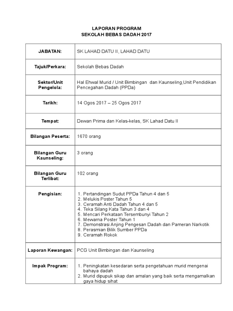 Buku Panduan Pelaksanaan Ppda Di Sekolah from imgv2-2-f.scribdassets.com Melahirkan pelajar bebas dadah melalui pelaksanaan program pendidikan pencegahan dadah ( ppda ) yang mantap dan berkesan dalam mempastikan sekolah bebas dari dadah. Melahirkan pelajar bebas dadah melalui pelaksanaan program pencegahan pendidikan dadah (ppda) yang mantap dan berkesan dalam memastikan sekolah bebas dari dadah. Melahirkan murid bebas dadah melalui ppda yang bersepadu dan menyeluruh daripada aspek pengurusan dan kepimpinan, kurikulum, kokurikulum, dan pembangunan sahsiah. Bebas cetak poster dengan desain sendiri, harga terbaik, dan proses yang cepat! Koleksi poster anti dadah 2. Program ini jua telah diserikan lagi dengan kehadiran encik muhammad firdaus bin abu talib, pegawai agensi anti dadah kebangsaan daerah sepang. Sekolah bebas dadah tahun 2012. Bebas rokok dan dadah melalui.