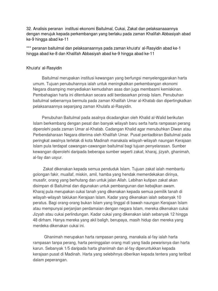 Documents similar to perkembangan ekonomi pada zaman kerajaan abbasiyah. Perkembangan sains dan teknologi pada zaman kerajaan abbasiyah. Di zaman al mansur bermulalah masa jaya dan masa perkembangan ilmu pengetahuan yang oleh karenanya daulah abbasiyah mencapai zaman keemasan, begitupun di zaman ini berkembang pengaruh persia. Ini membantu kerajaan abbasiyah memenuhi keperluan masyarakat yang sudah berkembang maju. Hasil negara pada zaman bani umaiyah, kerajaan abb… Kerajaan abbasiyah adalah sebuah kerajaan yang terkemuka dalam bidang perindustrian ketika itu. Tentera islam pada zaman abbasiyah memiliki. An sains dan teknologi pada kerajaan abbasiyah. § kegiatan ekonomi utama kerajaan abbasiyah ialah pertanian, perdagangan dan perindustrian. Sumbangan umat islam terhadap ilmu matematik sangat luar biasa. Ini berarti bahwa pemikiran ekonomi islam seusia dengan islam itu sendiri. Perkembangan lembaga pendidikan itu mencerminkan terjadinya perkembangan dan kemajuan ilmu pengetahuan. Disini ada beberapa prinsip prinsip yang pokok tentang kebijakan.